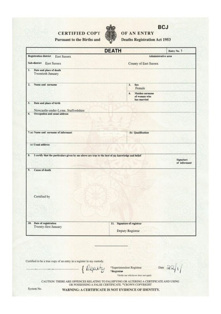Original Death Certificate